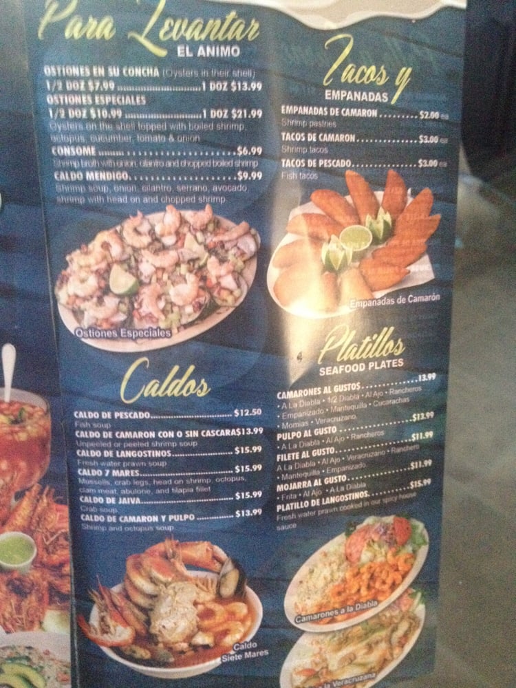 Una combinacin de aguachile, callo, camaron cocido, pulpo, y ostin servido en una salsa negra de casa. Va acompaado de pepino, tomate y cebolla. A combination of deveined shrimp (aguachile), scallops, boiled shrimp, octopus and oyster drowned in a house dark sauce. It is served with tomato, pepino, onion.